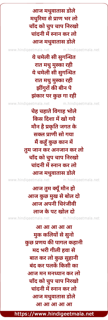 Lyrics of Aaj Madhuvatas Dole Madhurima Se Pran Bhar Lo - आज मधुवातास डोले मधुरिमा से प्राण भर लो