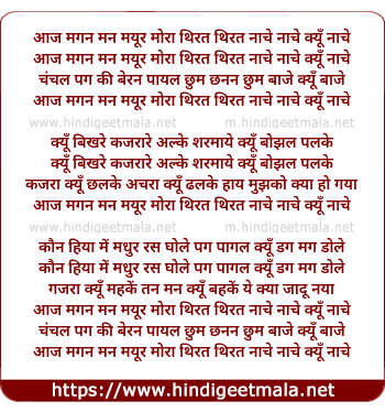 Lyrics of Aaj Magan Man Mayur Mora - आज मगन मन मयूर मोरा