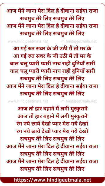 Lyrics of Aaj Maine Jana Mera Dil Hai Diwana - आज मैंने जाना मेरा दिल है दीवाना