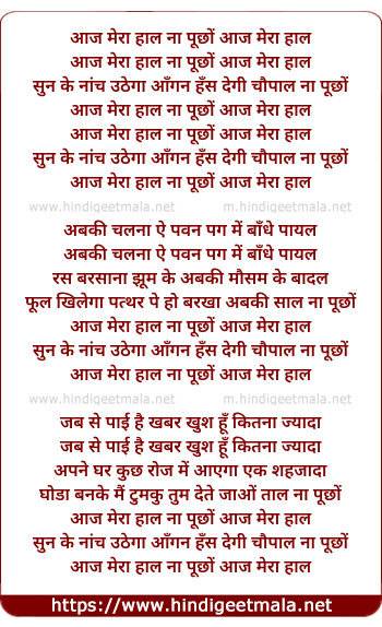 Lyrics of Aaj Mera Hal Na Puchho - आज मेरा हाल ना पूछों
