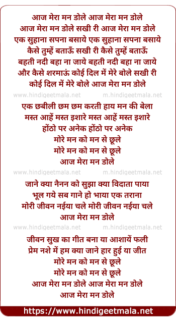 Lyrics of Aaj Mera Mann Dole - आज मेरा मन डोले