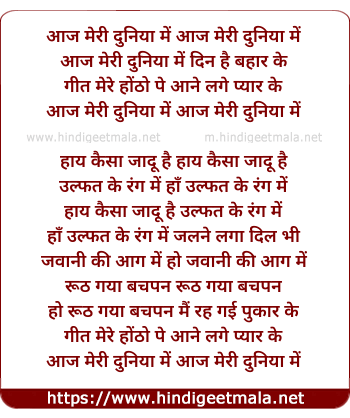 Lyrics of Aaj Meri Duniya Me Din Hai Bahar Ke - आज मेरी दुनिया में दिन है बहार के