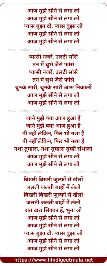 Lyrics of Aaj Mujhe Seene Se Laga Lo - आज मुझे सीने से लगा लो