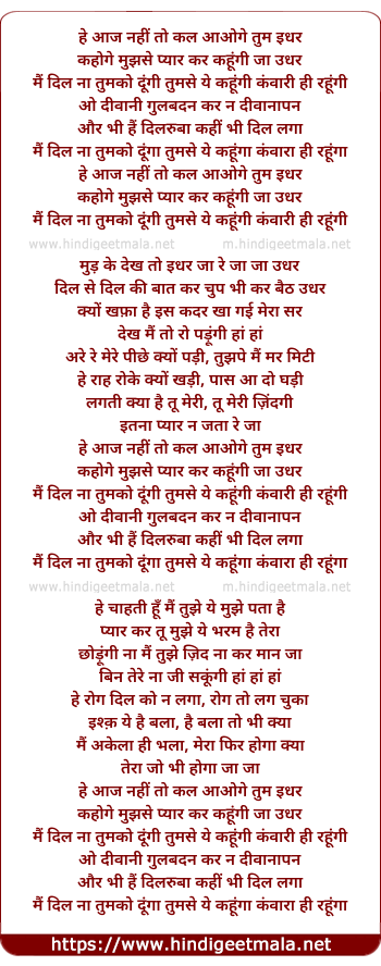 Lyrics of Aaj Nahin To Kal - आज नहीं तो कल