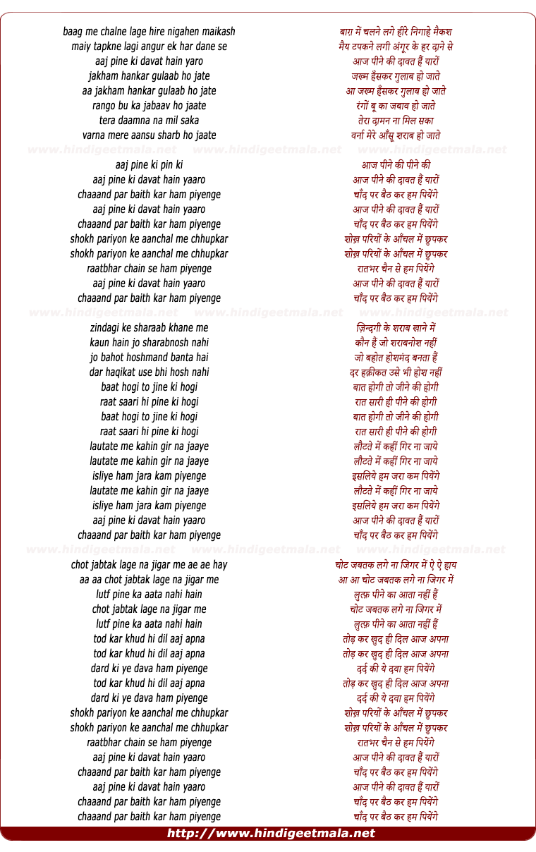 Lyrics of Aaj Peene Ki Dawat Hai - बाग़ में चलने लगे हीरे निगाहे मैकश
