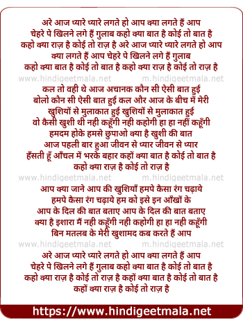 Lyrics of Aaj Pyare Pyare Lagte Ho Aap - आज प्यारे प्यारे लगते हो आप