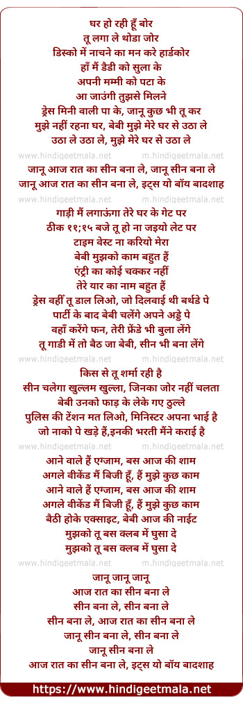 jaanu aaj raat ka scene bana le, it's yo boy badshah