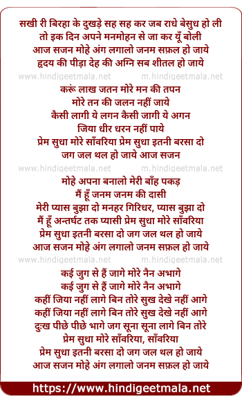 Lyrics of Aaj Sajan Mohe Ang Lagalo - आज साजन मोहे अंग लगालो