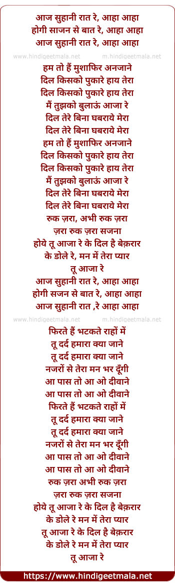 Lyrics of Aaj Suhani Raat Re - आज सुहानी रात रे