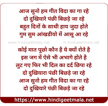 Lyrics of Aaj Suno Hum Geet Vida Ka Ga Rahe - आज सुनो हम गीत विदा का गा रहे
