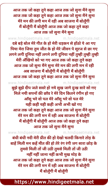 Lyrics of Aaj Tak Jo Kaha Tune Kaha - आज तक जो कहा तूने कहा