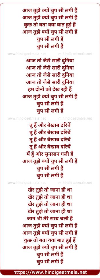 Lyrics of Aaj Tujhe Kyun Chup Si Lagi Hai - आज तुझे क्यों चुप सी लगी हैं