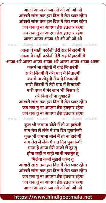 Lyrics of Aakhari Saans Tak Iss Dil Mein - आख़िरी सांस तक इस दिल में