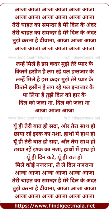 Lyrics of Aaja Aaja Jana, Teree Chahat Kaa Samandar Hai - आजा आजा आजा, तेरी चाहत का समन्दर है