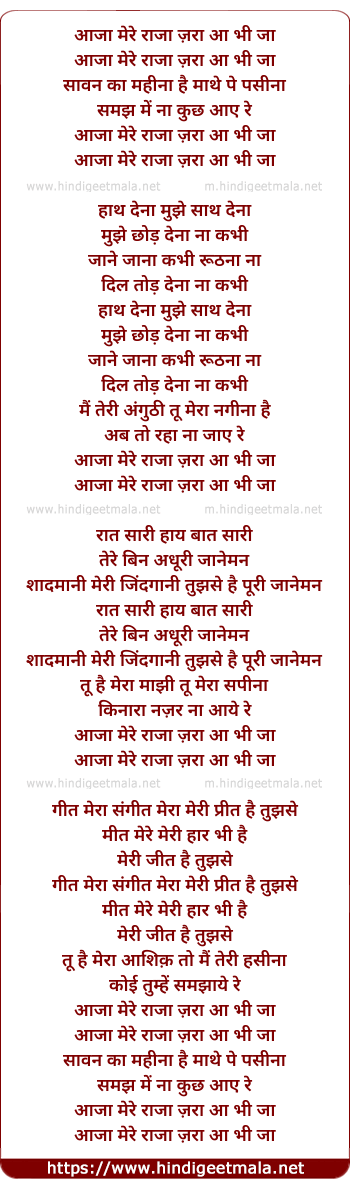 aaja mere raja zara aa bhi ja