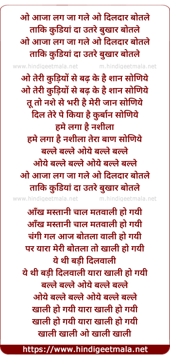 Lyrics of Aaja Lag Ja Gale - आजा लग जा गले