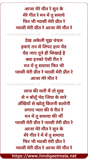 Lyrics of Aaja Mere Meet Re - आजा मेरे मीत रे