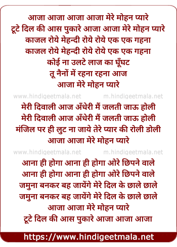 Lyrics of Aaja Mere Mohan Pyare - आजा मेरे मोहन प्यारे