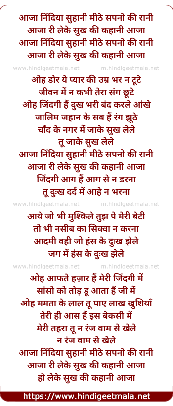 aajaa nindiyan suhani mithe sapno ki rani