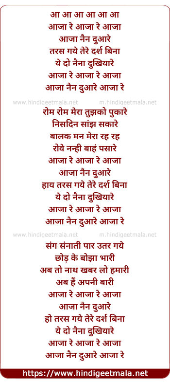 Lyrics of Aaja Re Aaja Re Aaja - आजा रे आजा रे आजा