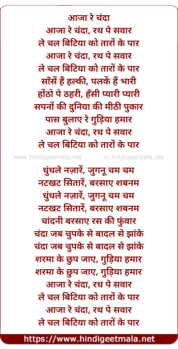 Lyrics of Aaja Re Chanda - आजा रे चंदा