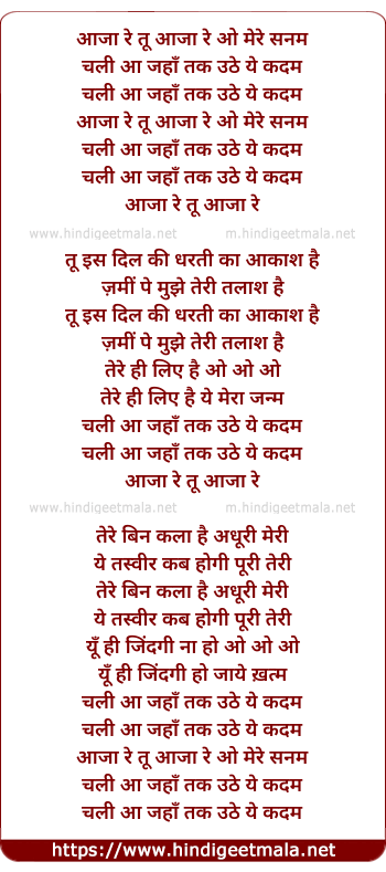 Lyrics of Aaja Re O Mere Sanam - आजा रे ओ मेरे सनम