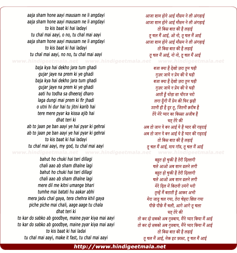 tu chal mai aayi, o no, tu chal mai aayi