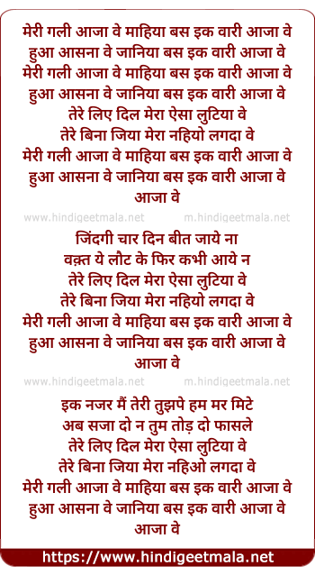 Lyrics of Aaja Ve (Remix) - मेरी गली आजा वे माहिया बस इक वारी आजा वे