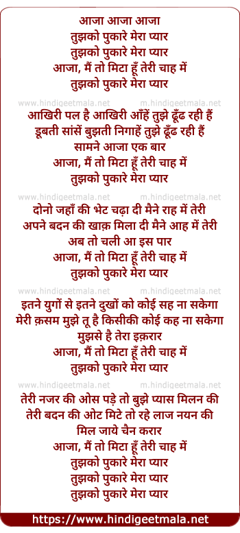 Aajaa Tujhako Pukaare Meraa Pyaar - आजा तुझको पुकारे मेरा प्यार