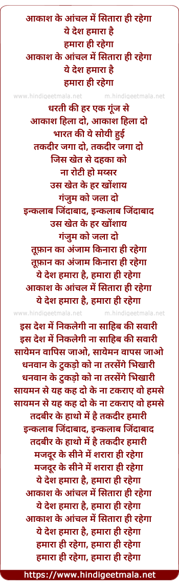 Lyrics of Aakash Ke Aanchal Me Sitara Hi Rahega - आकाश के आंचल में सितारा ही रहेगा