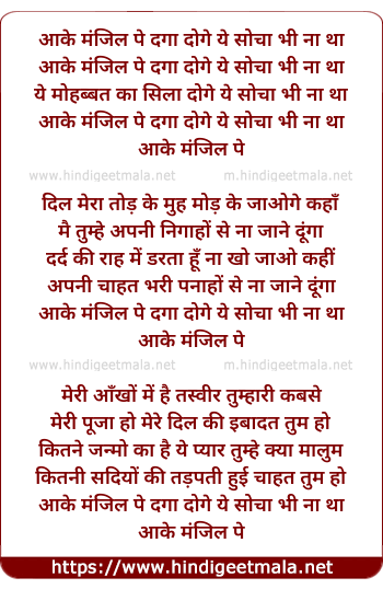Lyrics of Aake Manzil Pe Daga Doge - आके मंजिल पे दगा दोगे