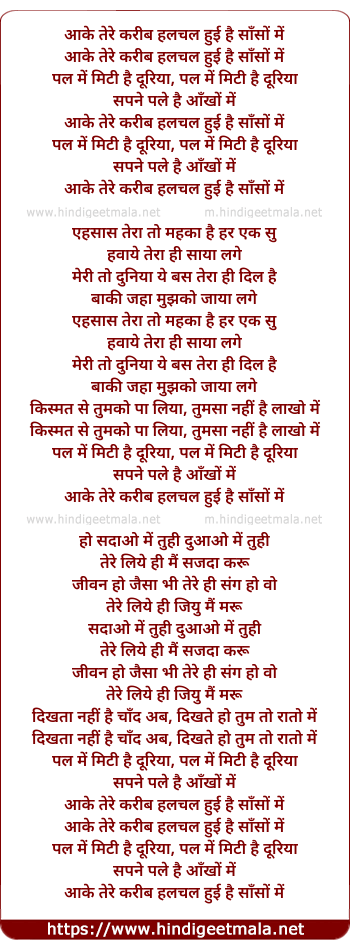 Lyrics of Aake Tere Karib - आके तेरे करीब