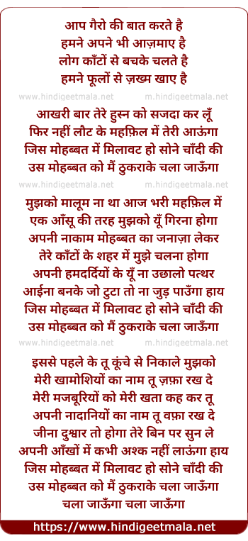 Lyrics of Aakhri Baar Tere Husn Ko - आखरी बार तेरे हुस्न को