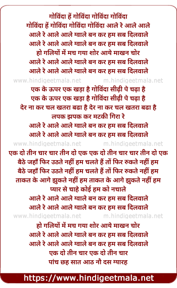 Lyrics of Aale Re Aale Gwale Ban Kar Hum Sab Dilwale - आले रे आले ग्वाले बन कर हम सब दिलवाले