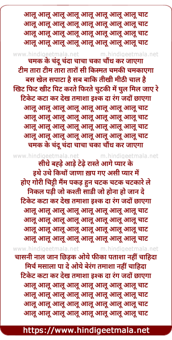 Lyrics of Aaloo Aaloo Aaloo Chaat - आलू आलू आलू आलू आलू आलू आलू आलू चाट