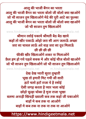 Lyrics of Aaloo Ki Bhaaji Bengan Ka Bharta - आलू की भाजी बैंगन का भरता