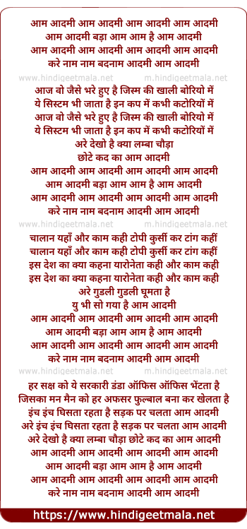 Lyrics of Aam Aam Hai Aam Aadmi - आम आदमी आम आदमी आम आदमी आम आदमी