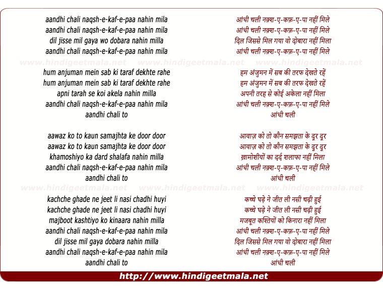 Lyrics of Aandhi Chali Toh - आंधी चली नक़्श-ए-कफ़-ए-पा नहीं मिले