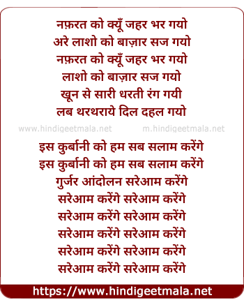 Lyrics of Aandolan Saryam Karenge (Sad) - नफ़रत को क्यूँ जहर भर गयो