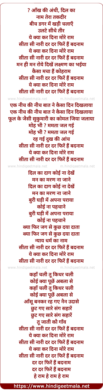 Lyrics of Aankh Ki Andhi - ? आँख की अंधी, दिल का