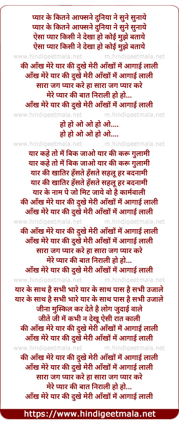 ki aankh mere yaar ki dukhe meri aankho me aa gai lali
