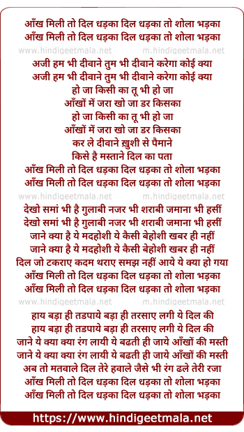 Lyrics of Aankh Mili To Dil Dhadka, Dil Dhadka To Sholaa Bhadkaa - आँख मिली तो दिल धड़का, दिल धड़का तो शोला भड़का