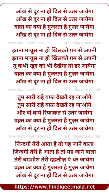 Lyrics of Aankh Se Door Na Ho - आँख से दूर ना हो