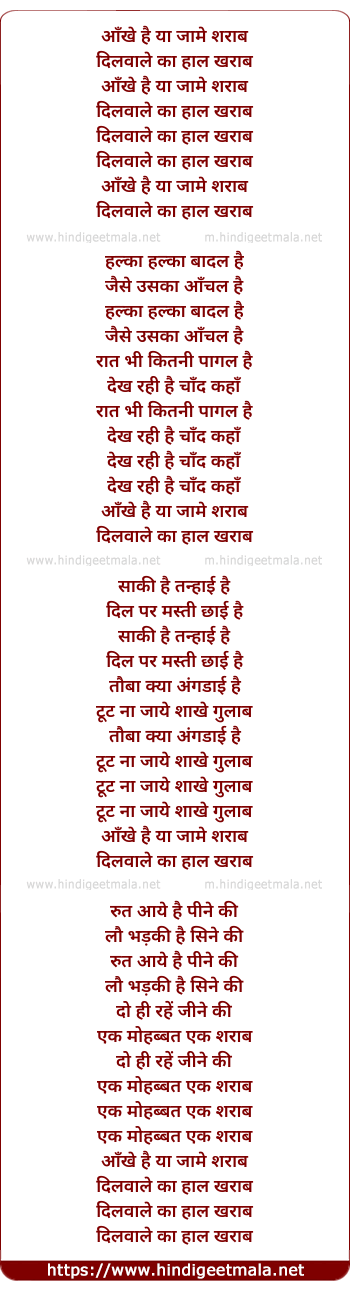 Lyrics of Aankhe Hai Ya Jame Sharab - आँखे है या जामे शराब
