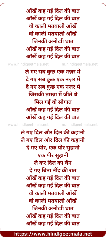 Lyrics of Aankhe Keh Gayi Dil Ki Baat - आँखें कह गईं दिल की बात