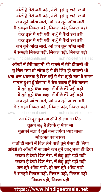 aankhe hai teri badi badi, dekhe mujhe tu khadi khadi