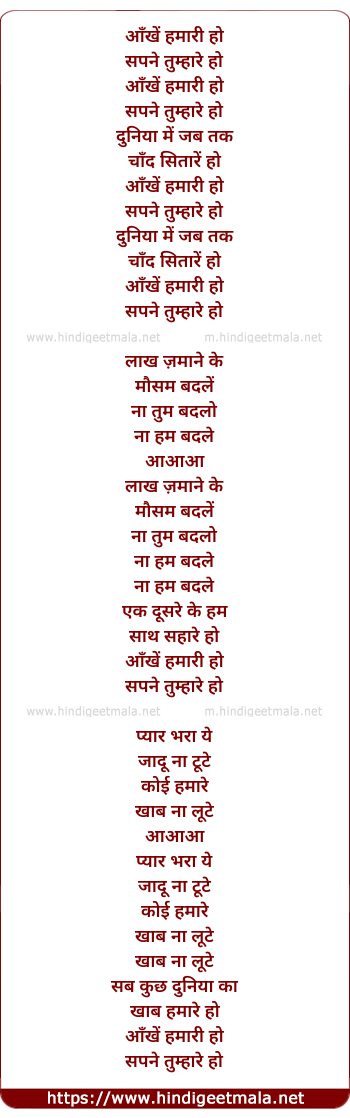 Lyrics of Aankhein Hamari Ho, Sapne Tumhare Ho - आँखें हमारी हो