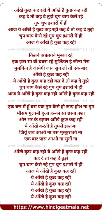 Lyrics of Aankhe Kuch Kah Rahi Kah De To Kah De Tujhe - आँखे कुछ कह रही कह दे तो कह दे तुझे