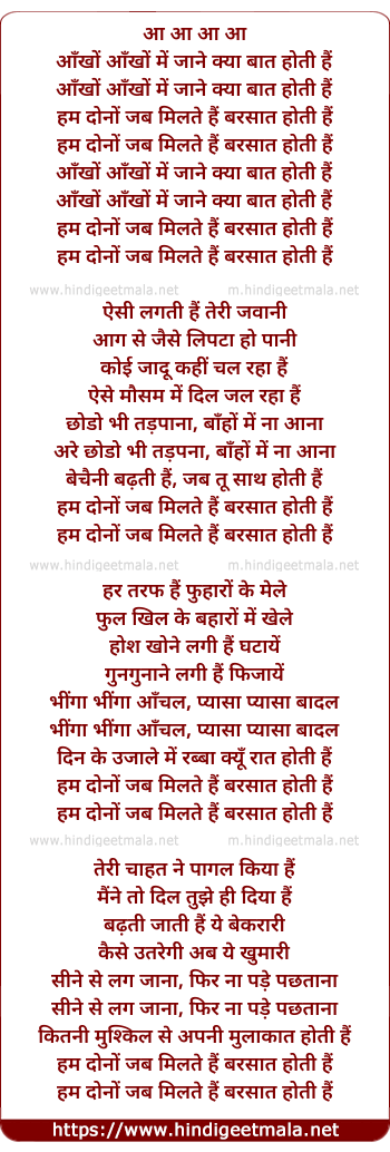 Lyrics of Aankho Aankho Me - आँखों आँखों में