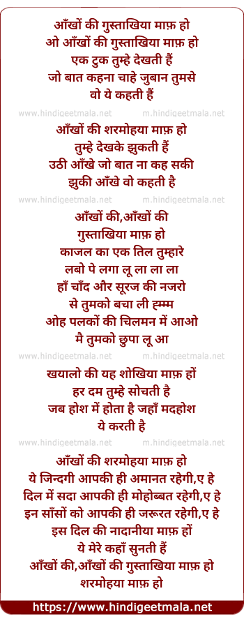 Lyrics of Aankho Kee Gustakhiya Maf Ho - आँखों की गुस्ताखिया माफ़ हो
